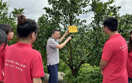 7月15日,实践团怀揣着惠农助农的热情整装待发,前往被称为“贡桔之乡”的四川省眉山市东坡区秦家镇,以柑桔产业为调研重点,选取位于大佛村的东坡岩柑水果家庭农场,开启了一场科技与土地的对话。