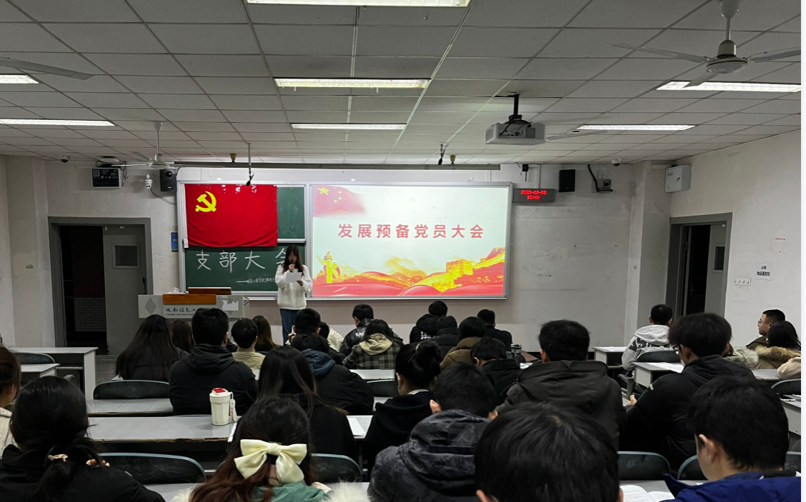 为贯彻落实《中国共产党发展党员工作细则》,保证党员发展质量,保持党的先进性和纯洁性,英国上市公司365本科第一、第二党支部于2023年12月5日晚在H1208、H1209教室开展支部大会活动,支部全体党员、发展对象参加。