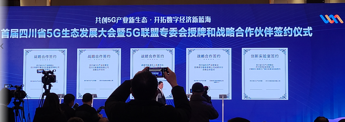 签约仪式先后完成对5G 联盟专委会和基地授牌,举行5G产业链合作、5G试点示范项目、5G产融合作项目的签约仪式。由四川省 5G 产业联盟秘书长汇报联盟年度工作;四川省 5G 产业联盟智能制造、智慧农业、智慧教育、文化旅游、5G 基础网络专委会提出促进四川省5G发展的倡议。