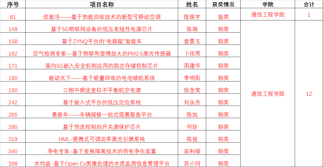 本学院陈侯宇团队的项目优智冷——基于热能回收技术的新型可移动空调获得省级银奖,陈瑞团队、曾曼玉团队、卜佳雨团队、周建华团队、李明阳团队、张含笑团队、刘永杰团队、陈旭团队、何珍团队、陈俊团队、苗利硕团队、苏小珂团队的项目获得省级铜奖。特此通报!