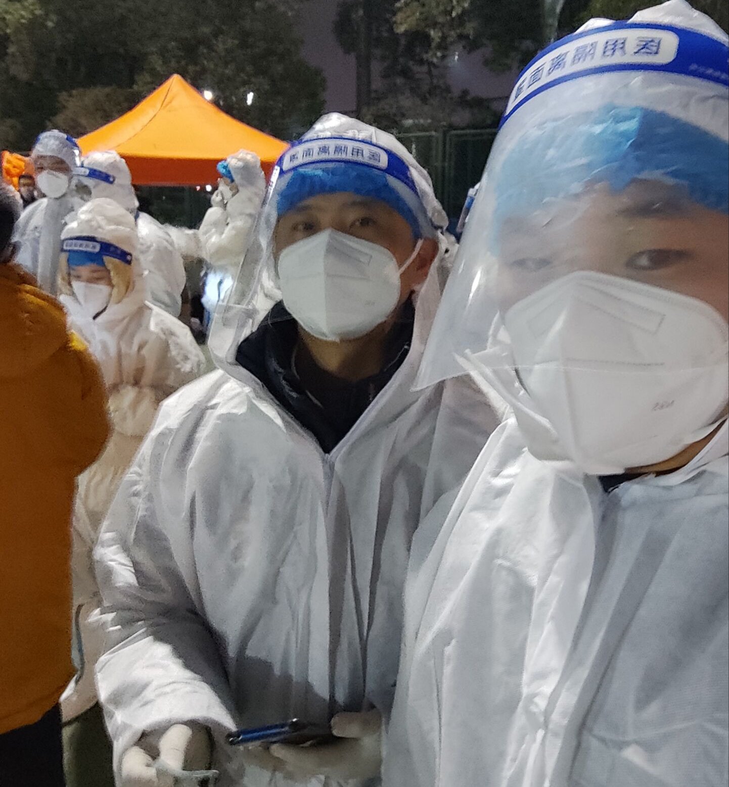 一、11月30日晚,航空港校区第一田径场员工全员核酸,马文英书记带领学院学工队伍第一时间赶到现场,积极配合学校防疫工作。刘畅副书记和辅导员翟静波作为扫码志愿者参与核酸检测,与医务人员紧密配合,保证了当天核酸检测的顺利进行。