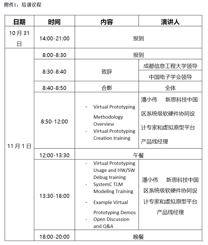 “全国高校新一代信息技术系列团队培训——新思专场”将于2019年11月1日在英国上市公司365举行。培训结束经考核通过,由中国电子学会颁发“电子信息人才能力提升工程专业技术人才证书”,根据人力资源社会保障部办公厅印发的《国家级专业技术人员继续教育基地管理办法》(人社厅发〔2013〕53 号)相关规定,学习情况可作为对专业技术人员考核评价、岗位聘用、职称评聘和执业注册的重要依据。现将有关事宜通知如下: