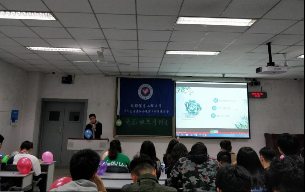 会议开始,由秘书处干事王一多主持,全体齐唱“青年志愿者之歌”。随后,各部门三月代理部长发言,他们提及从去年12月到现在部门发生的各种事情,并总结了期间所举办的活动,老部长们也见证了从新入学到现在部门干事的成长。同时,他们指出从这学期开始实行代理部长出现的种种问题,并希望未来两个月的代理部长们做出改进。期间进行了一个小游戏活跃氛围。会议最后,由会长以及代理会长指出:现在分会内部出现的问题,以及代理部长工作做得不够到位等问题,并强调要时刻牢记、遵守《分会管理委员会条例》。