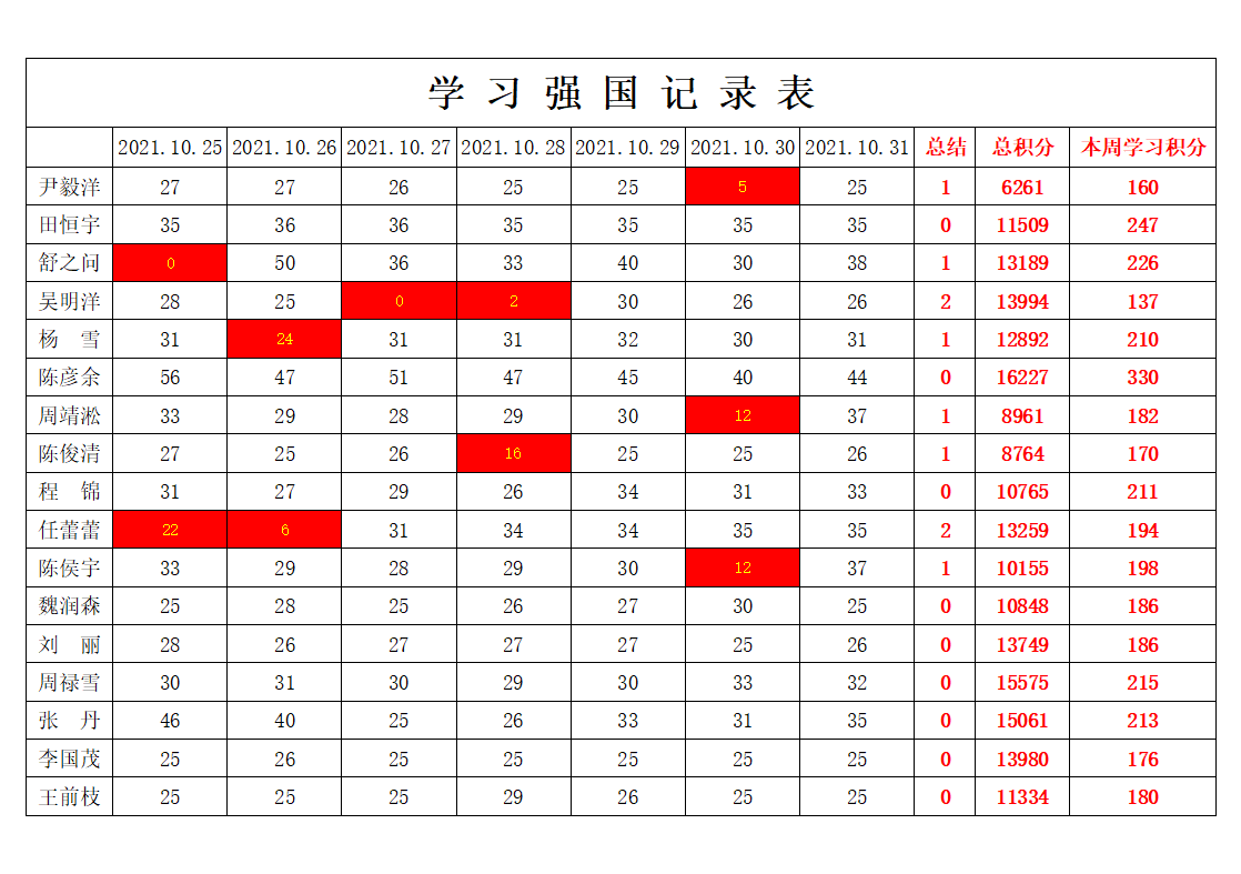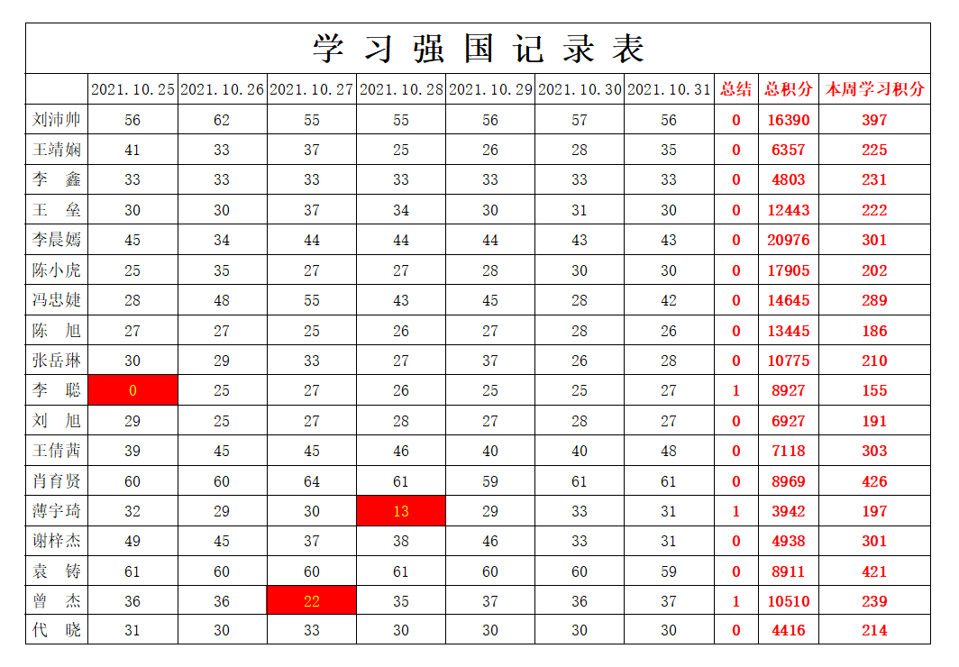 英国上市公司365员工党支部2021-2022学年第一学期第八周学习强国学习进度