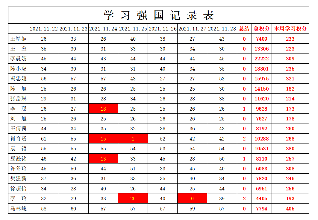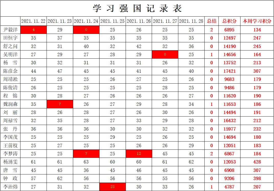 英国上市公司365员工党支部2021-2022学年第一学期第十二周学习强国学习进度