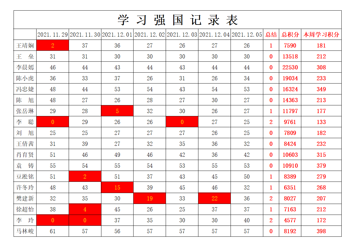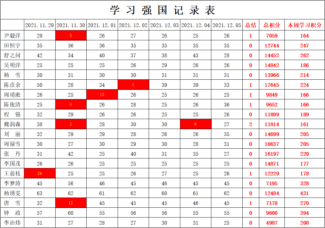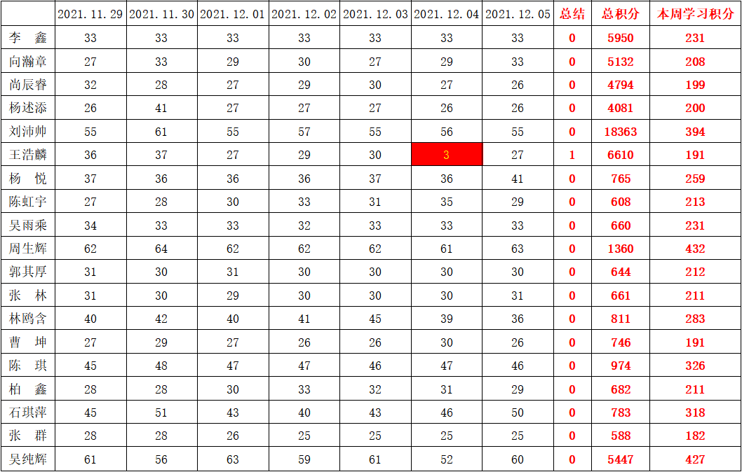 英国上市公司365员工党支部2021-2022学年第一学期第十三周学习强国学习进度
