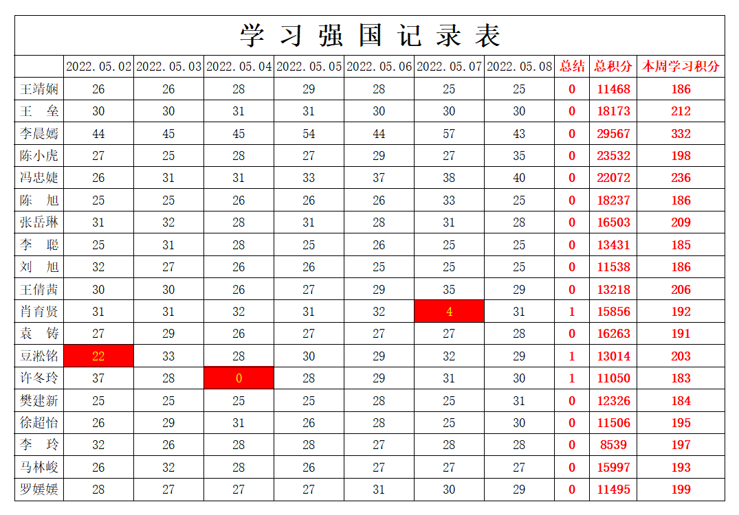 英国上市公司365员工党支部2021-2022学年第二学期第十一周学习强国学习进度
