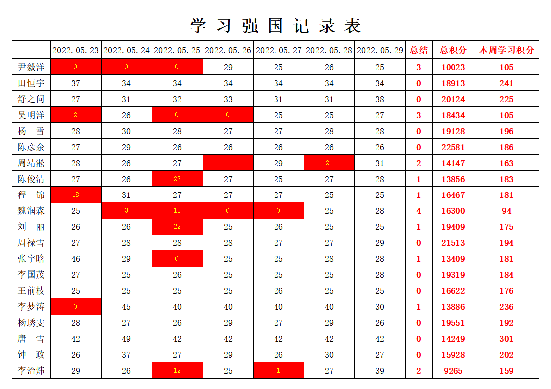 英国上市公司365员工党支部2021-2022学年第二学期第十四周学习强国学习进度