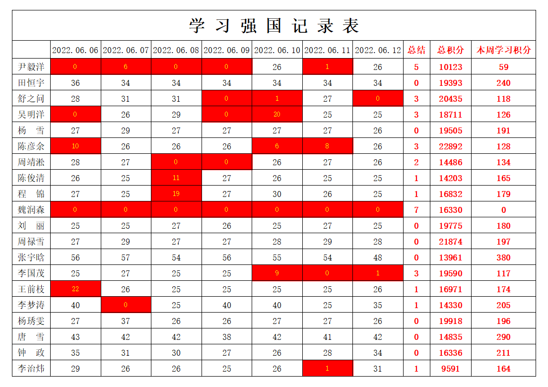 英国上市公司365员工党支部2021-2022学年第二学期第十六周学习强国学习进度