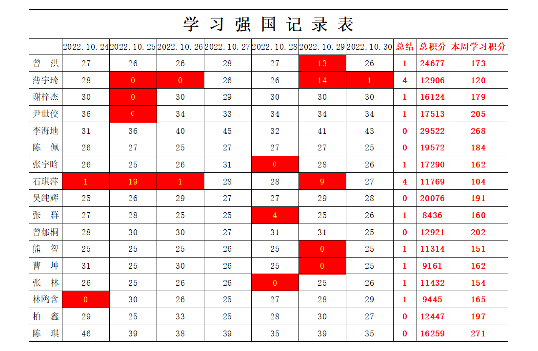英国上市公司365员工党支部2022-2023学年第一学期第七周学习强国学习进度
