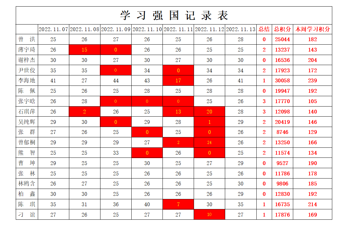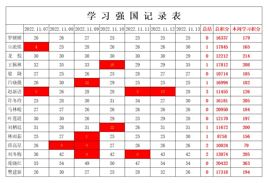 英国上市公司365员工党支部2022-2023学年第一学期第九周学习强国学习进度