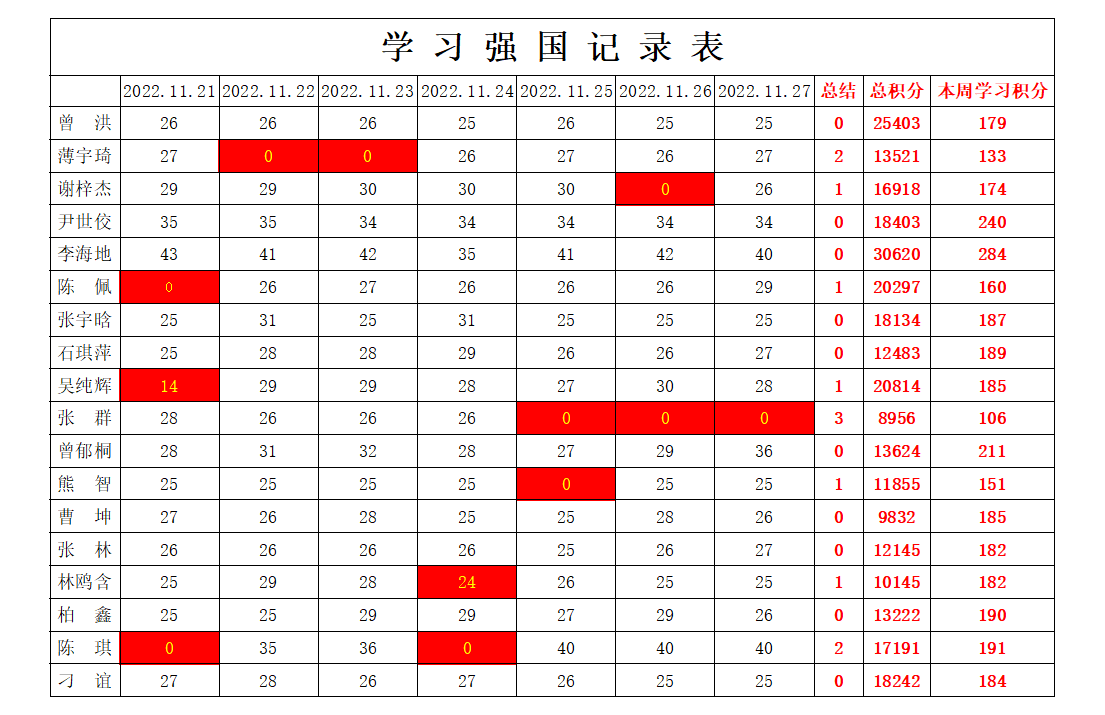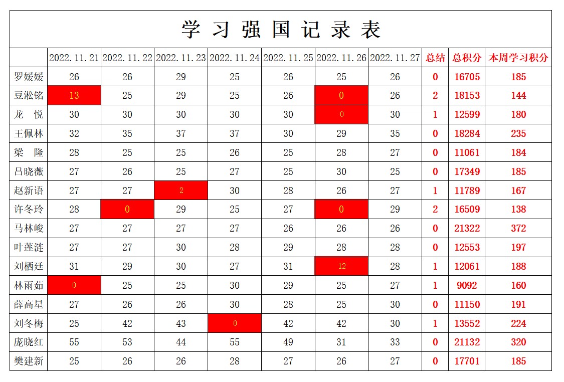 英国上市公司365员工党支部2022-2023学年第一学期第十一周学习强国学习进度