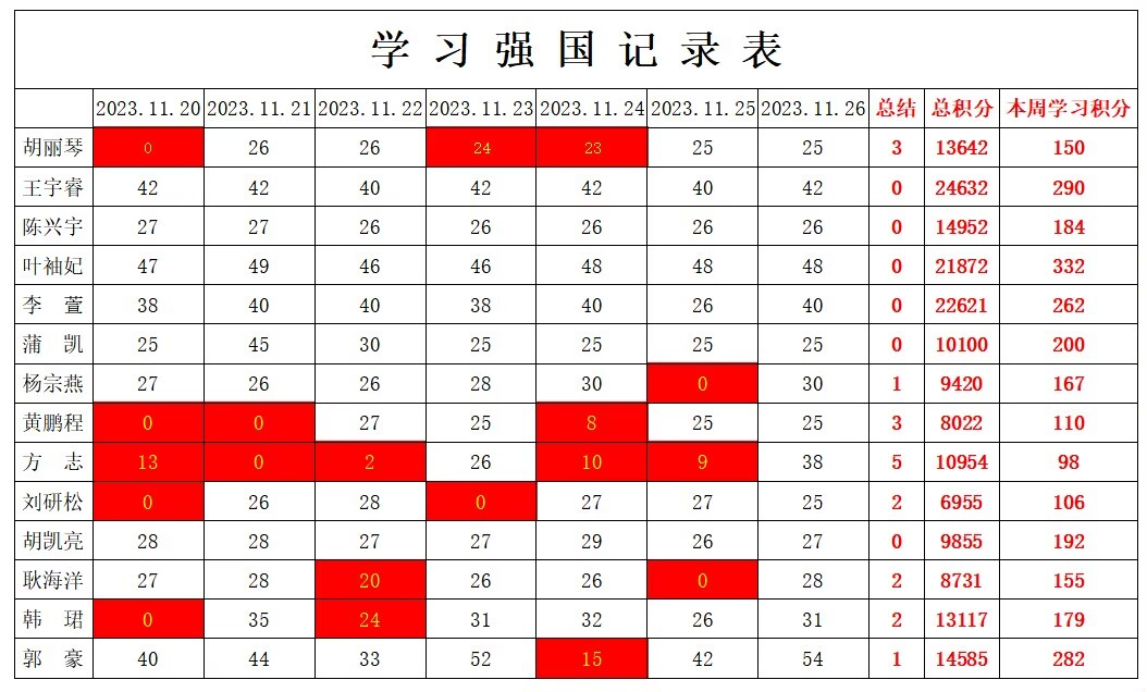 英国上市公司365员工党支部2023-2024学年第一学期第十二周学习强国学习进度