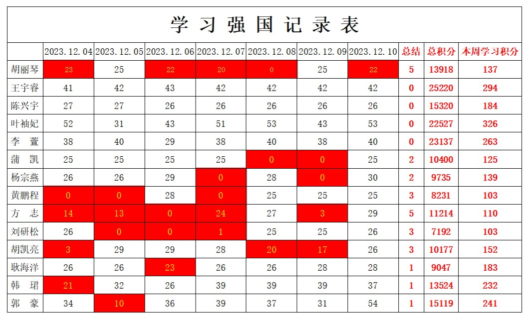 英国上市公司365员工党支部2023-2024学年第一学期第十四周学习强国学习进度