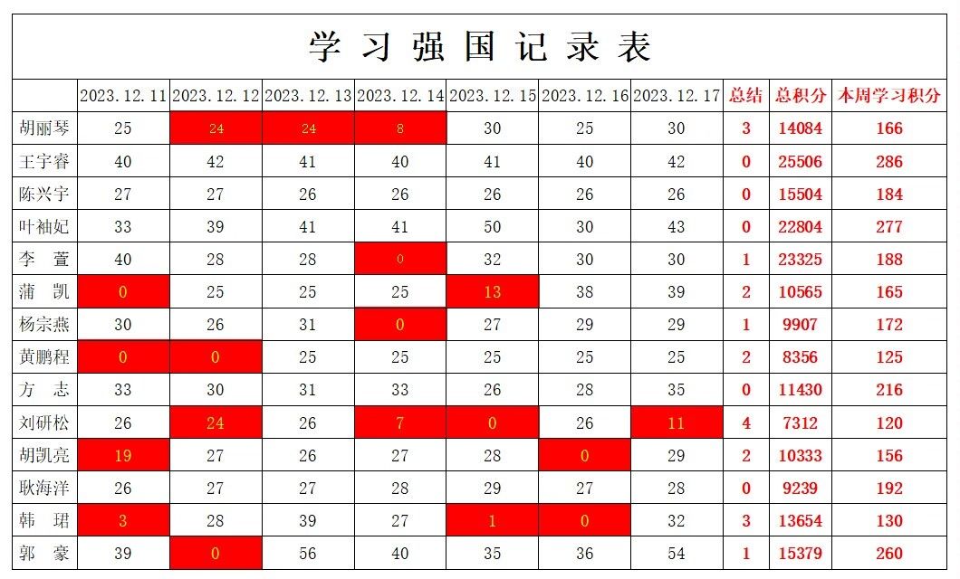英国上市公司365员工党支部2023-2024学年第一学期第十五周学习强国学习进度